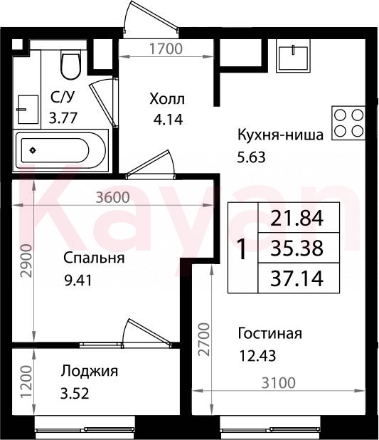 Продажа 2-комн. квартиры, 35.38 кв.м
