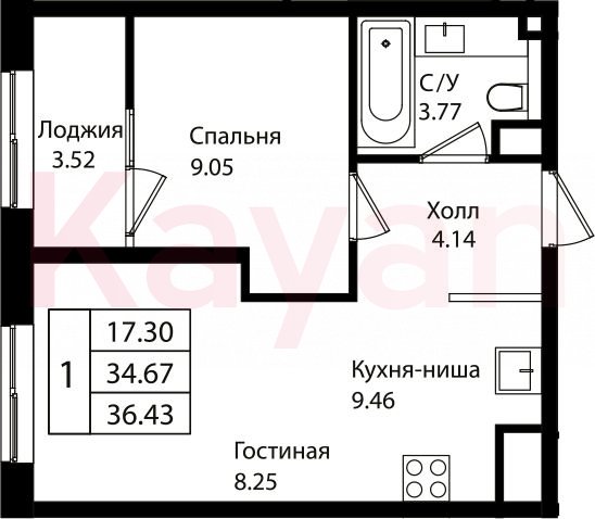 Продажа 2-комн. квартиры, 34.67 кв.м