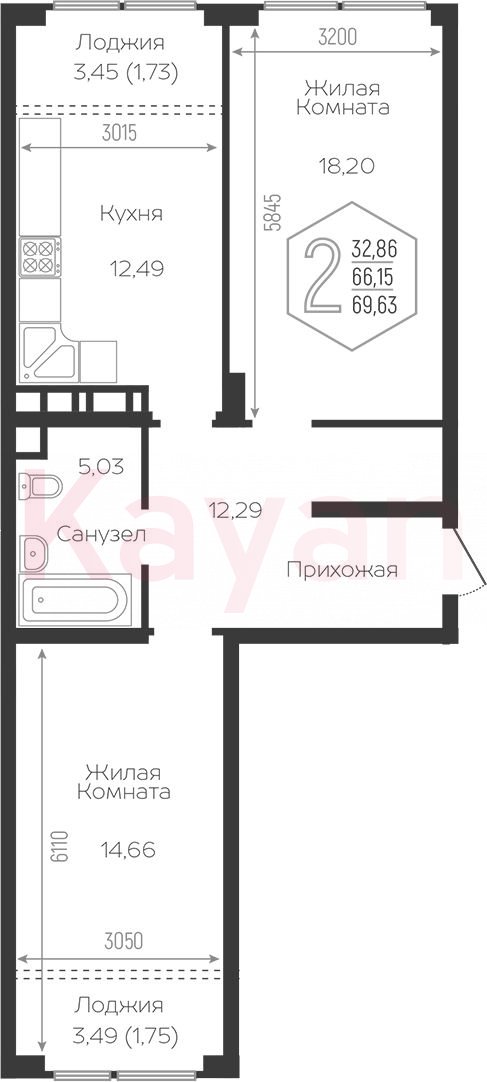 Продажа 2-комн. квартиры, 64.02 кв.м