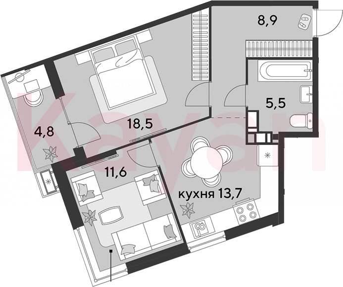 Продажа 2-комн. квартиры, 58.2 кв.м