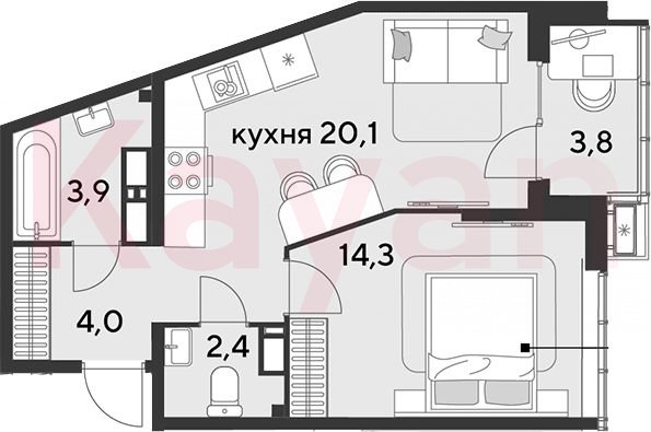 Продажа 2-комн. квартиры, 44.7 кв.м