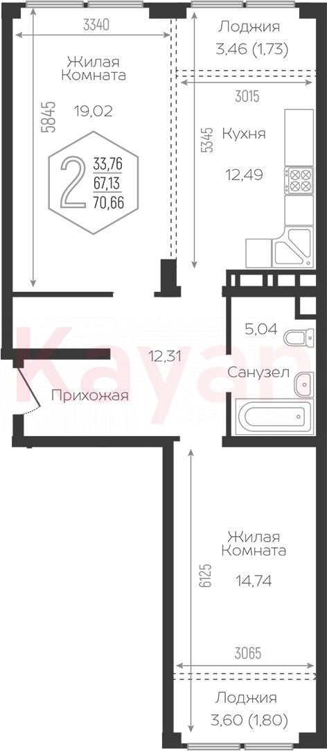 Продажа 2-комн. квартиры, 65.87 кв.м