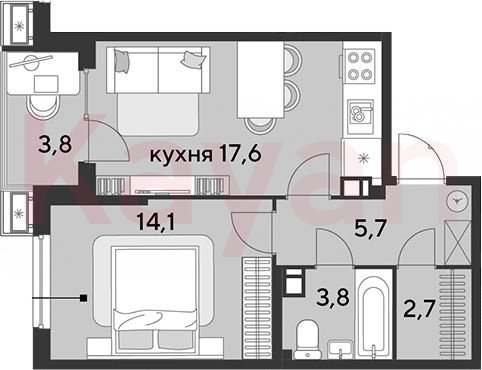 Продажа 2-комн. квартиры, 43.9 кв.м