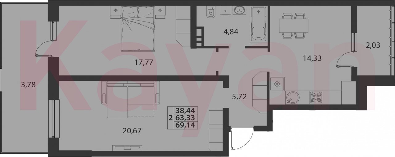 Продажа 2-комн. квартиры, 63.33 кв.м