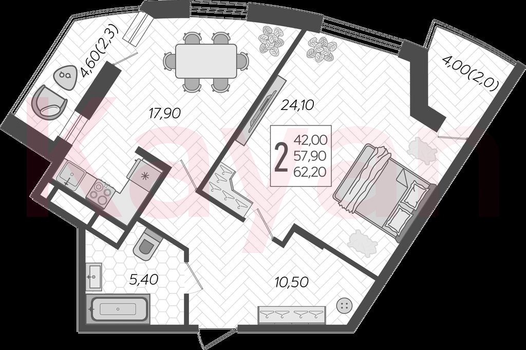 Продажа 2-комн. квартиры, 57.9 кв.м