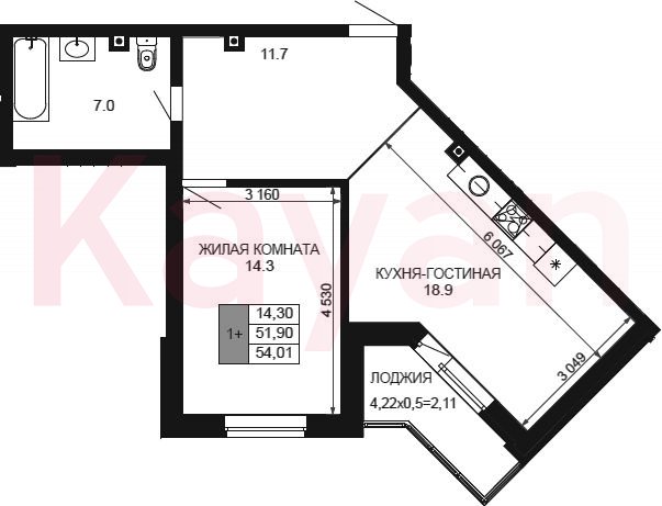 Продажа 2-комн. квартиры, 51.9 кв.м