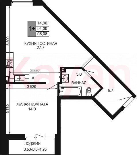 Продажа 2-комн. квартиры, 54.32 кв.м