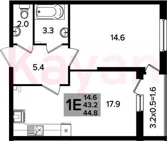 Продажа 2-комн. квартиры, 43.2 кв.м