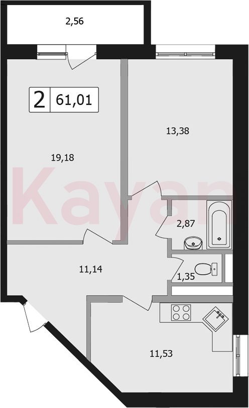Продажа 2-комн. квартиры, 59.3 кв.м