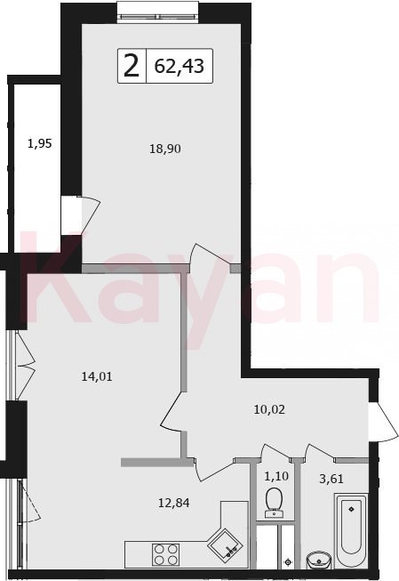 Продажа 2-комн. квартиры, 62.4 кв.м