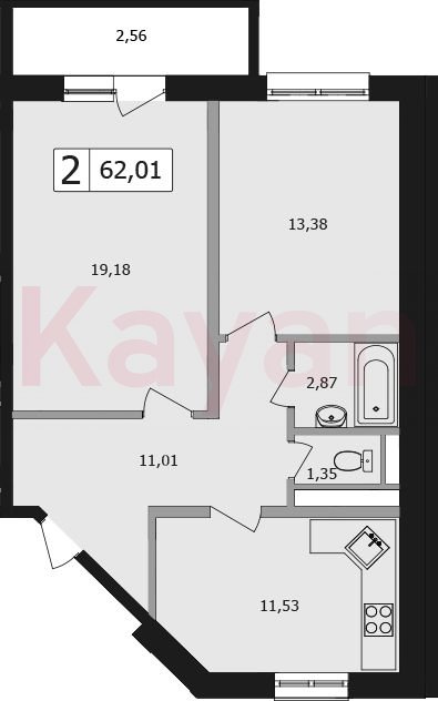 Продажа 2-комн. квартиры, 61.9 кв.м