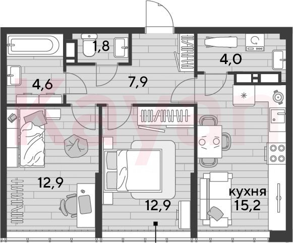 Продажа 2-комн. квартиры, 59.3 кв.м