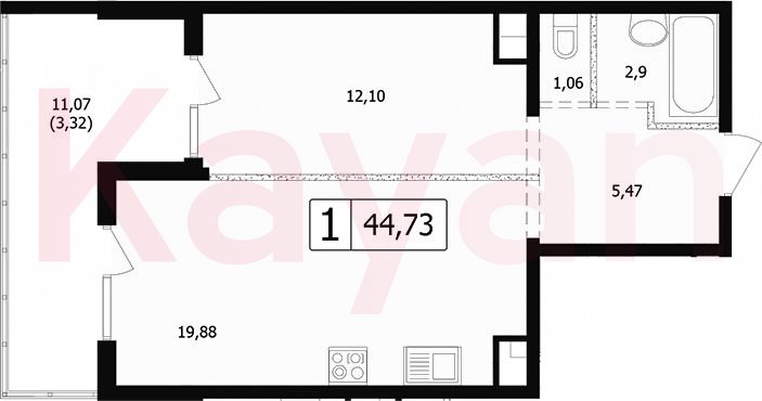 Продажа 2-комн. квартиры, 38.68 кв.м