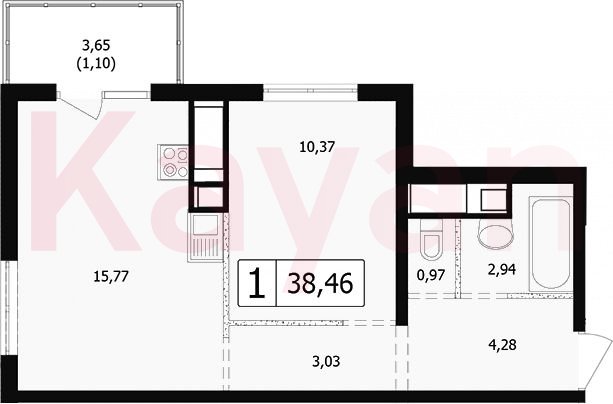 Квартира в ЖК «Парусная регата» (VSN Group) литер 4 очередь 1, Кирпично-монолитный, 2 к.кв., 37.36 кв.м., 16/24, высота потолков: 2.7 м, жилая площадь: 10.37 кв.м., возможна ипотека, площадь кухни 15.77 кв.м.,