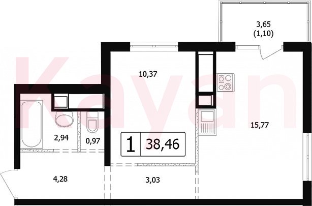 Квартира в ЖК «Парусная регата» (VSN Group) литер 4 очередь 1, Кирпично-монолитный, 2 к.кв., 37.36 кв.м., 19/24, высота потолков: 2.7 м, жилая площадь: 10.37 кв.м., возможна ипотека, площадь кухни 15.77 кв.м.,