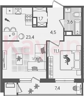 Продажа 2-комн. квартиры, 44.3 кв.м