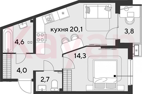 Продажа 2-комн. квартиры, 45.7 кв.м