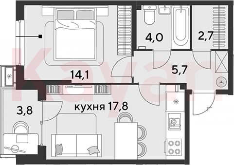 Продажа 2-комн. квартиры, 44.3 кв.м