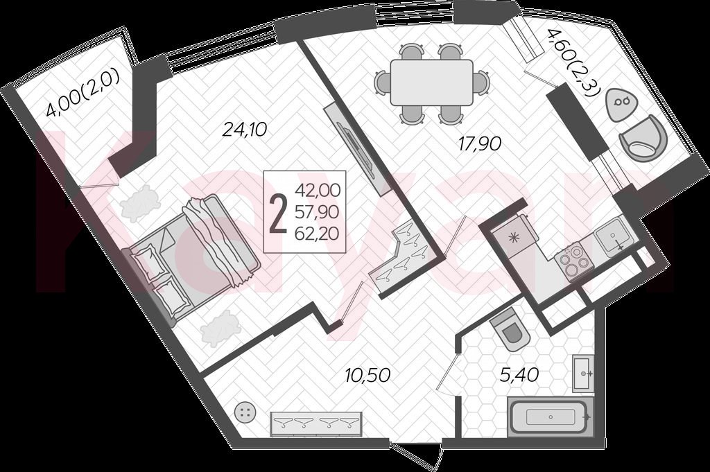 Продажа 2-комн. квартиры, 57.9 кв.м