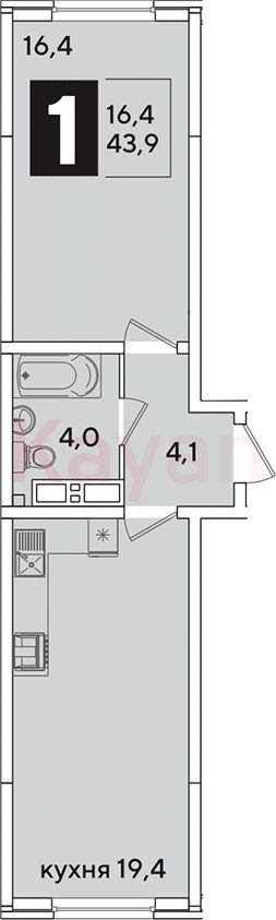 Продажа 2-комн. квартиры, 43.9 кв.м