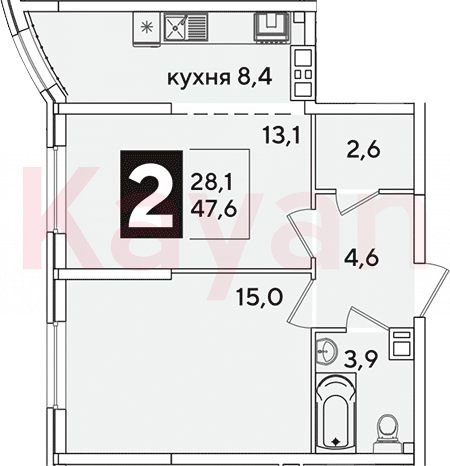 Продажа 2-комн. квартиры, 47.6 кв.м