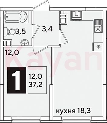 Продажа 2-комн. квартиры, 37.2 кв.м