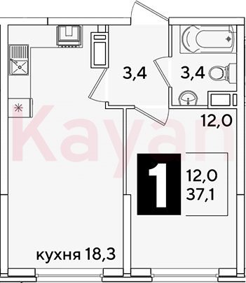 Продажа 2-комн. квартиры, 37.1 кв.м