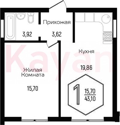 Продажа 2-комн. квартиры, 43.1 кв.м