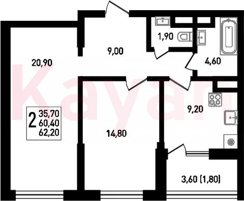 Продажа 2-комн. квартиры, 60.4 кв.м