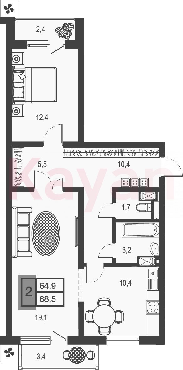 В проекте представлено множество планировочных решений: от 1-комнатных до 3х-комнатных квартир с собственным балконом или лоджией. На первом этаже здания располагаются апартаменты с отдельным входом и увеличенными окнами и потолками 3,3 метра. Из комплекса открывается вид на Карасунские озера.