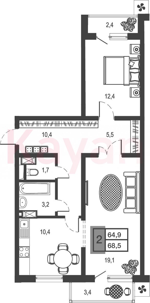 Продажа 2-комн. квартиры, 62.68 кв.м