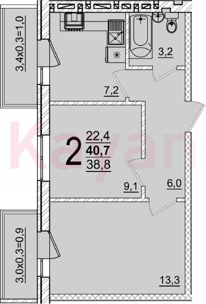 Продажа 2-комн. квартиры, 38.8 кв.м