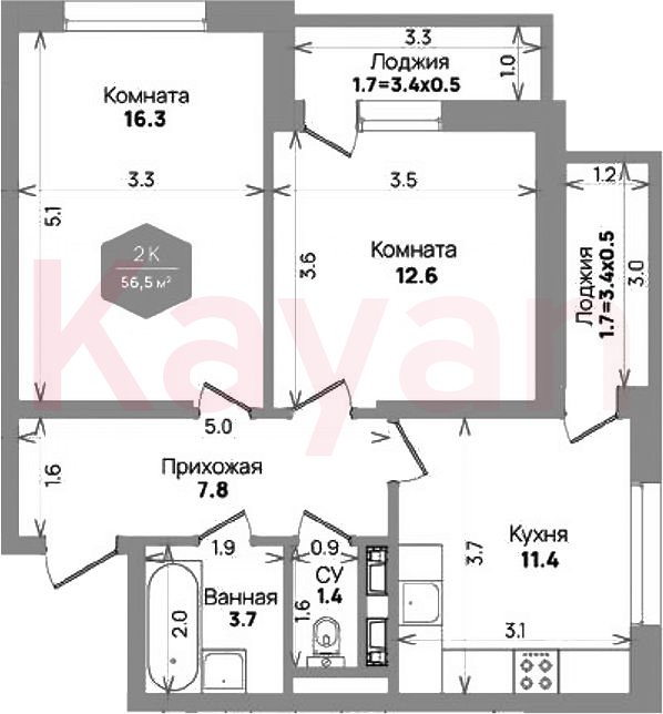 Продажа 2-комн. квартиры, 53.1 кв.м