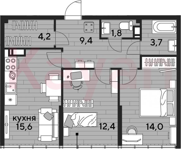 Продажа 2-комн. квартиры, 61.1 кв.м
