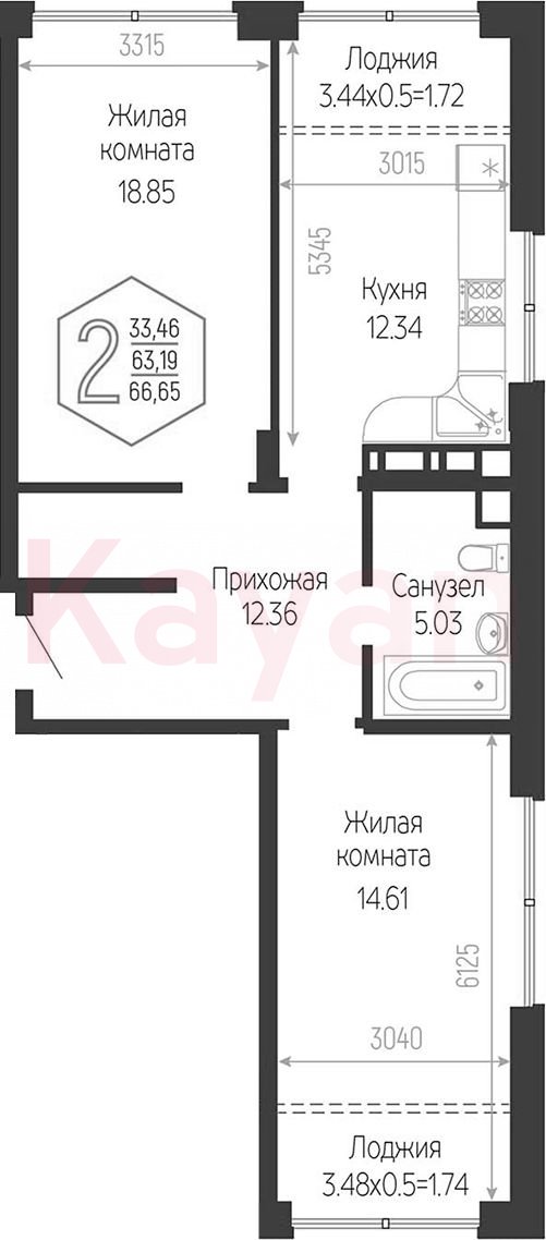 Продажа 2-комн. квартиры, 63.17 кв.м
