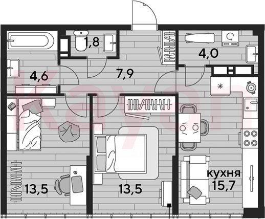 Продажа 2-комн. квартиры, 61 кв.м