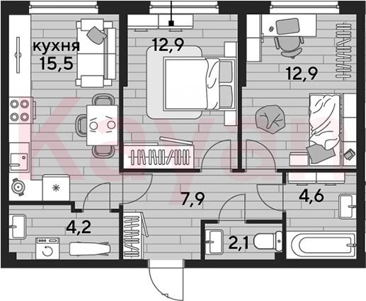 Продажа 2-комн. квартиры, 60.1 кв.м