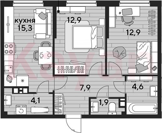 Продажа 2-комн. квартиры, 59.6 кв.м