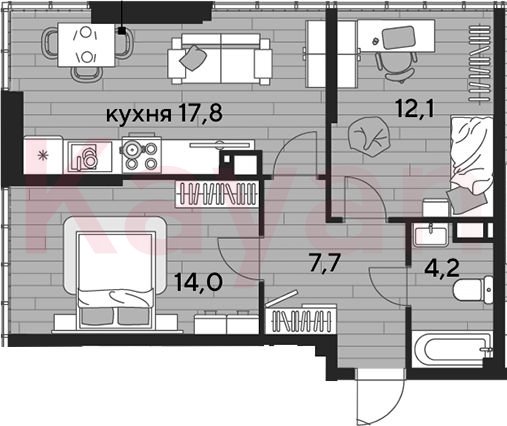 Продажа 2-комн. квартиры, 55.8 кв.м