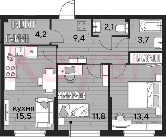 Продажа 2-комн. квартиры, 60.1 кв.м