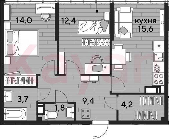 Продажа 2-комн. квартиры, 61.1 кв.м