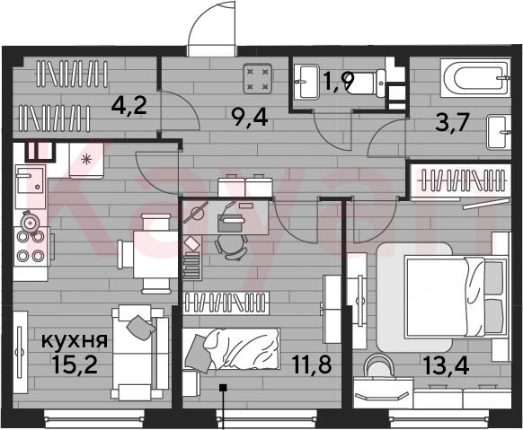 Продажа 2-комн. квартиры, 59.6 кв.м