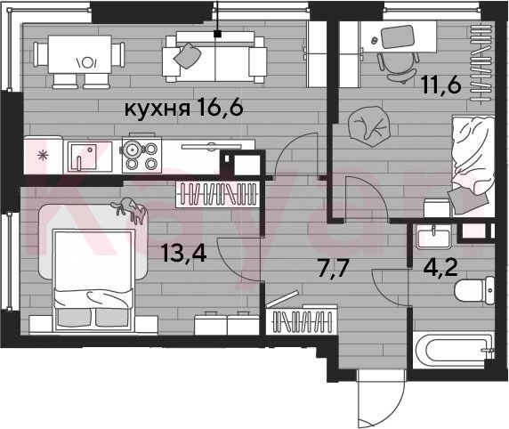 Продажа 2-комн. квартиры, 53.5 кв.м