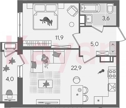Продажа 2-комн. квартиры, 43.4 кв.м
