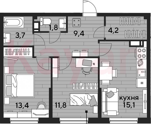 Продажа 2-комн. квартиры, 59.4 кв.м