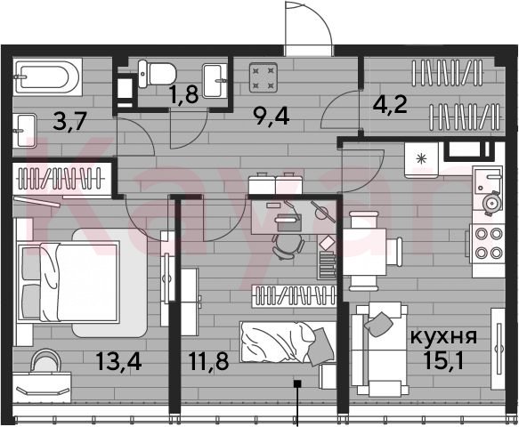 Продажа 2-комн. квартиры, 59.4 кв.м