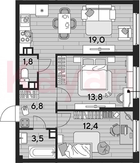Продажа 2-комн. квартиры, 57.3 кв.м