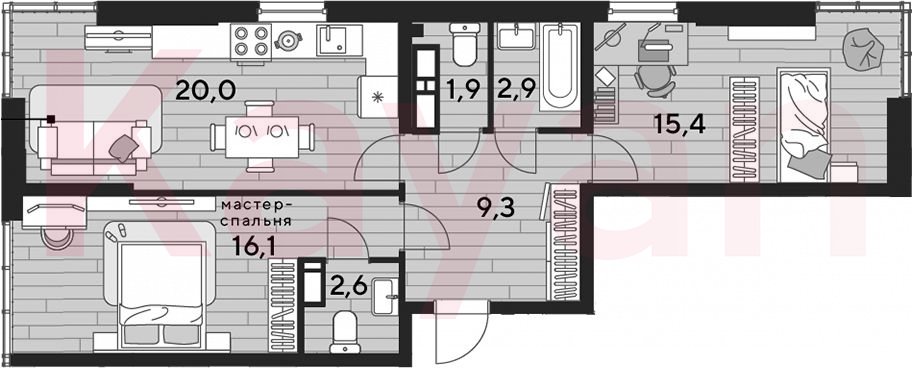 В комплексе предложено множество планировочных решений: в наличии квартиры, как классического типа, так и европланировки. Сдаются они с подчистовой отделкой, системой «Умный дом» и высотой потолков от 2,72 метра.