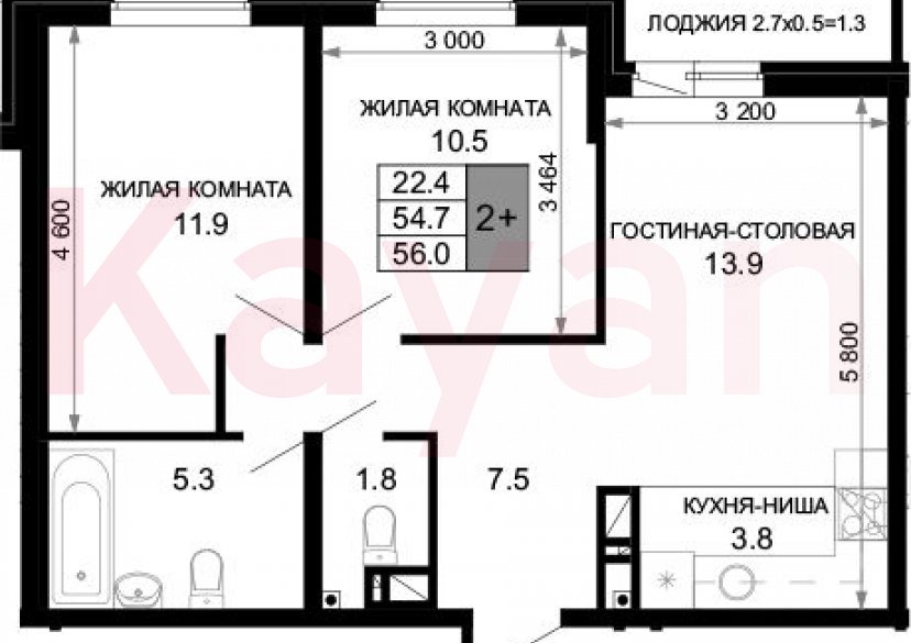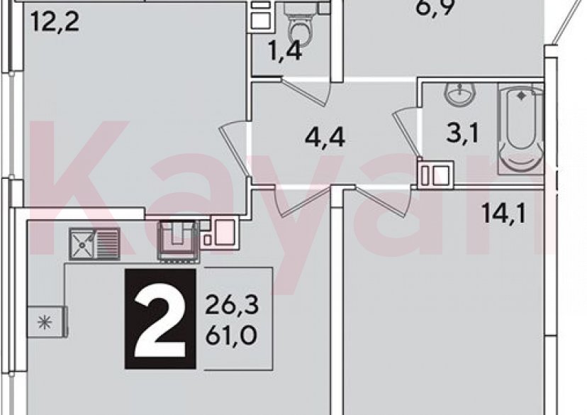 Продажа 2-комн. квартиры, 59.4 кв.м