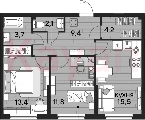 Продажа 2-комн. квартиры, 60.1 кв.м